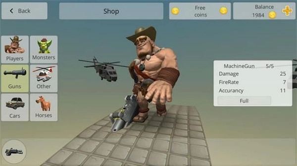 2、在众多枪械中选择机枪时,会看到一个带有数字和升级按钮的方框,旁边的金钱数值代表升级所需的费用。当攒够足够的钱并将机枪升级到满级后,就能做到几枪击倒一个敌人。