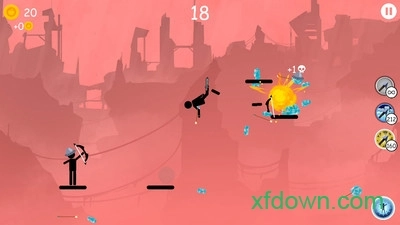 1、把控好力度与角度,持续战胜处于不同方位的火柴人对手;