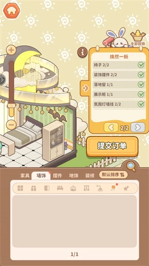 5、把所有家具都摆放好之后,就可以点击提交订单领取奖励了。