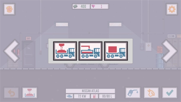 1、进入应用后,在主界面通过点击左右箭头能够切换卡车,而解锁卡车需要消耗金币。