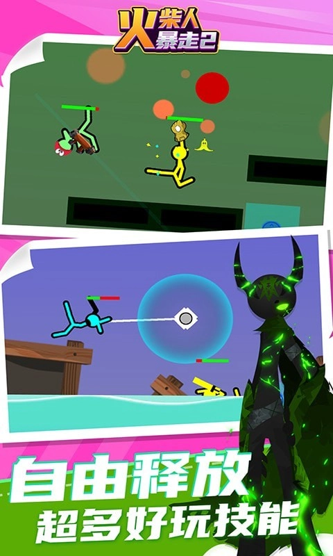 在这款游戏里,你能体验到各式各样的挑战,有不同类型的火柴人角色,还有多种可供使用的武器;界面设计精致又简洁,你可以自由地去探索;操作方式简单易懂,能参与不同的竞技挑战,同时还有不少技能可以供你使用。