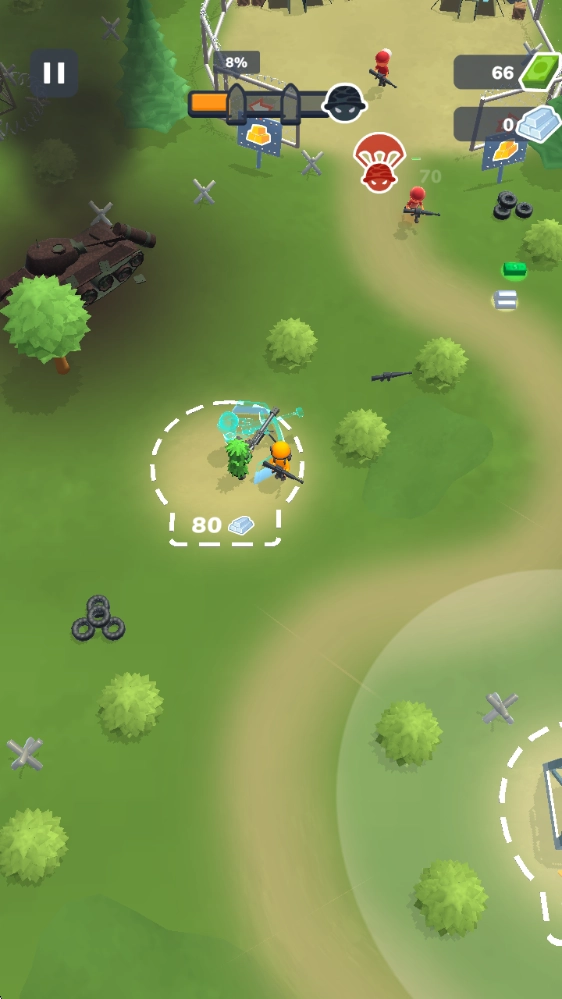 1、中拖动屏幕即可控制自己的士兵进行攻击。