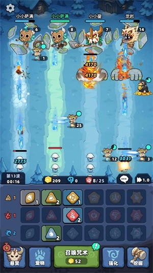 2、每次召唤出来的咒术都是随机生成的,不同属性的咒术能够让你自由组合搭配,以此应对各种不同的挑战。