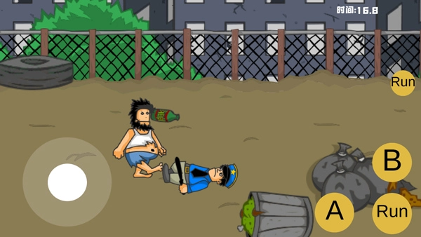 游戏采用直观的触控操作设计:屏幕左侧的虚拟摇杆负责角色移动,右侧则配备了攻击键与奔跑键。玩家需灵活运用这些操作来应对各类挑战。在游戏初期,你要快速熟悉战斗技巧,只需通过简单的A键出拳,就能击败两名巡逻的保安。随着游戏进程的推进,更复杂的连招系统会逐步解锁——例如使用ABA连招,能让角色从口中吐出食物来吸引女性NPC的注意力,随后抓住时机按下A键发起攻击。这些操作看似简单,却需要玩家精准把握时机与节奏。
