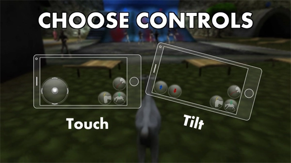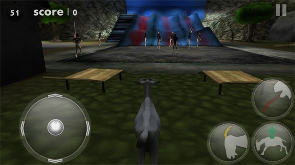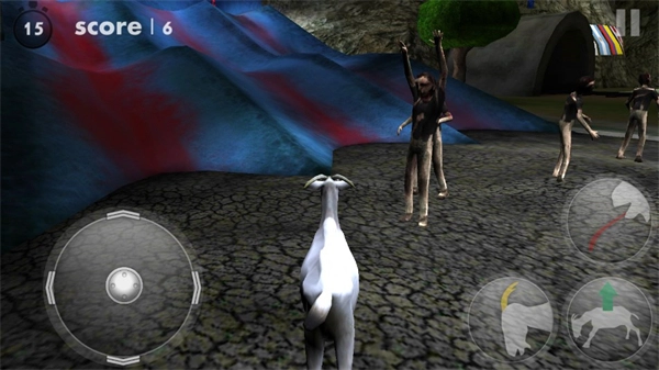 3、借助虚拟摇杆操控山羊移动,在城市的大街小巷中自由穿行,去寻找目标以及可互动的元素。
