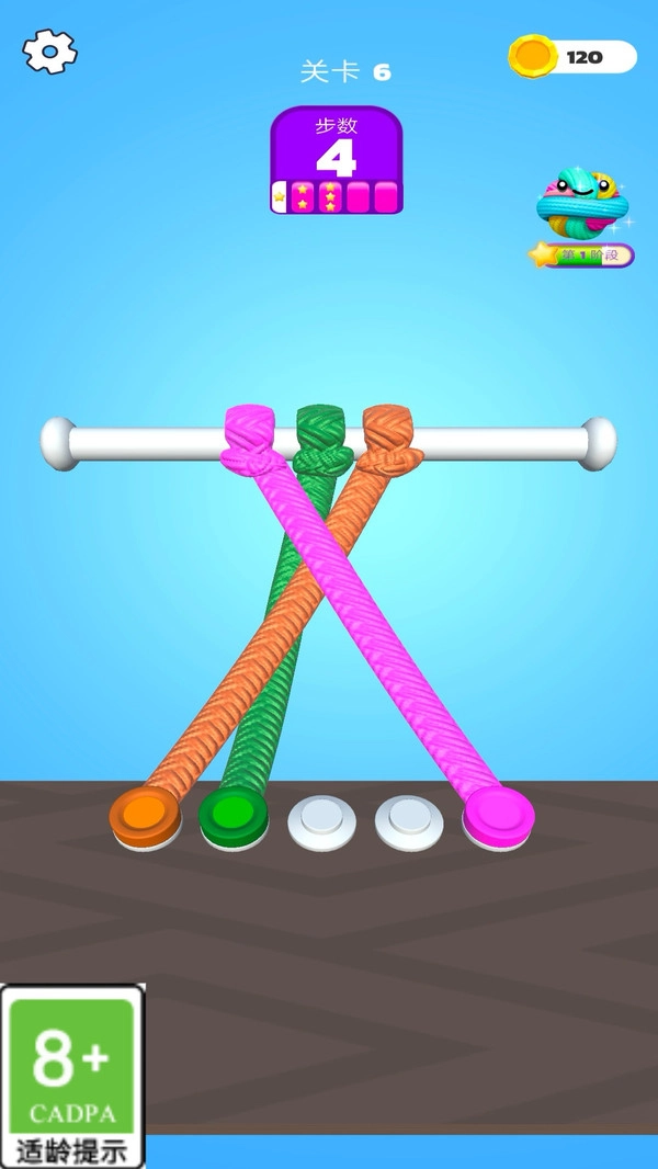 2.合理规划顺序:部分关卡要求准确判断绳子的交错情况,解绳时需按照层次逐步解开,这对耐心和判断能力是一种考验。