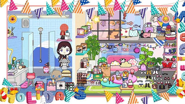 百种场景:公主城堡、购物中心、游乐园、美装沙龙、水上乐园、度假区(海滩&小岛、观光区)等。