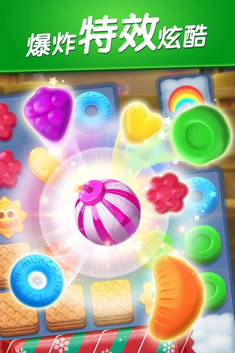 4、特效系统绚烂夺目,连续消除时会触发全屏动画与特殊音效反馈。糖果爆炸的粒子效果精致细腻,进一步提升了消除操作带来的视觉满足感。