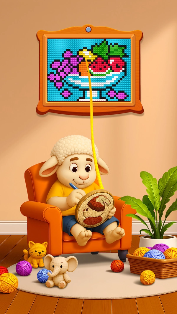 2.连线消除玩法:当三个相同颜色的毛线球连成一线时,即可触发消除效果,同时解锁该颜色,让像素画的调色板逐步变得丰富,为后续的创作积累更多素材与灵感。