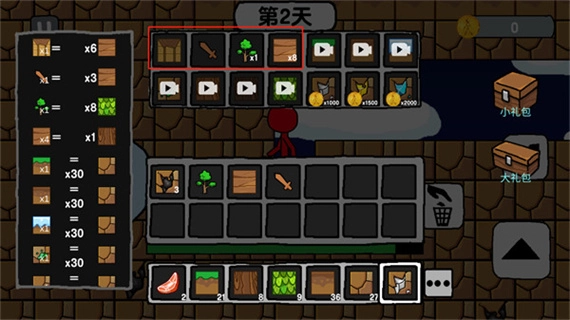 6、位于中上方的方框区域展示的是可制作的道具,而其下方则是玩家的背包空间。