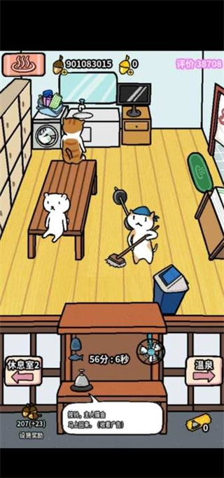 对温泉的评价值进行全面升级,安排主人猫前往村子邀请动物。若主人猫邀请的动物之前来过温泉,该动物就会得到升级;当该动物获得沐浴用品的次数超过10次时,将获得常客印章;而常客动物每获得10次沐浴用品,其常客等级便会提升。