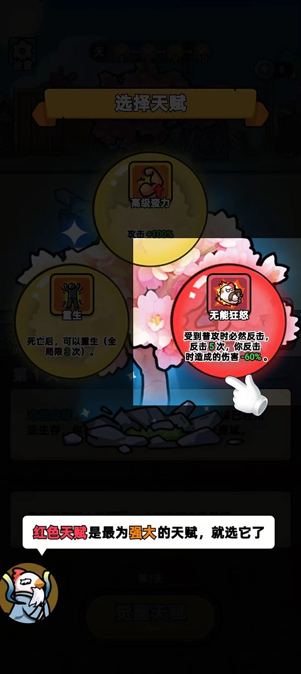 红色天赋堪称最强天赋,玩家在升级过程中可挑选更厉害的天赋来提升自身实力。