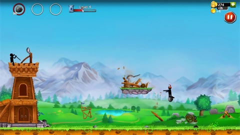 3、成为城堡围攻的传奇大师,借助弹射器工事摧毁邪恶的敌方火柴人。