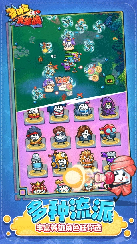 2.推出风格各异的茶叶蛋角色,每个角色均配备专属技能与属性。