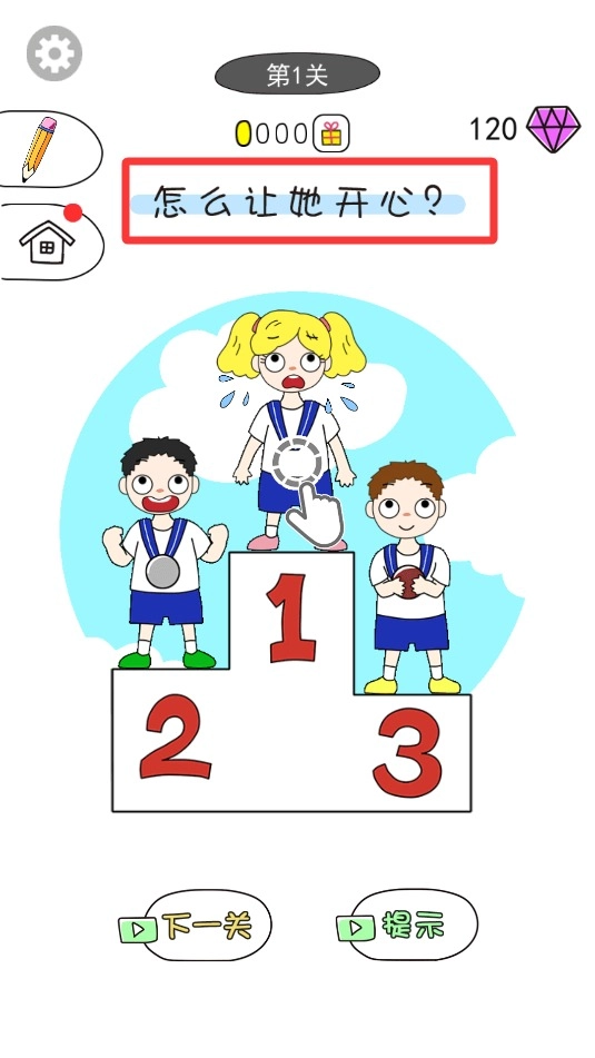 1、开始游戏时,先留意左上角的表情提示,例如可能要求消除所有蓝色哭脸图案。按照虚线箭头的指引,精准定位第一个目标点,避免随意绘制。