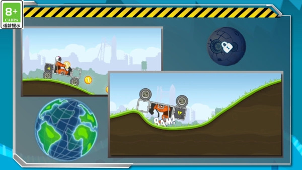 4、操作十分简单,玩法和登山赛车类似,当车头翘起时,玩家按住刹车即可。
