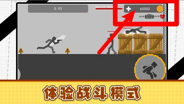 3.战斗模式:在战斗模式下,玩家能够收集金币和各类道具,界面右上角会显示当前的血量与累积分数。玩家需要通过击败沿途的敌人、灵活避开箱子障碍,来完成向前推进的挑战任务。