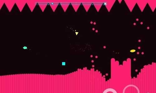 6、图形会随着节奏不断分裂与重组,这十分考验玩家的即时反应能力——遇到红色方块时需要点击,而蓝色三角则要持续按压。