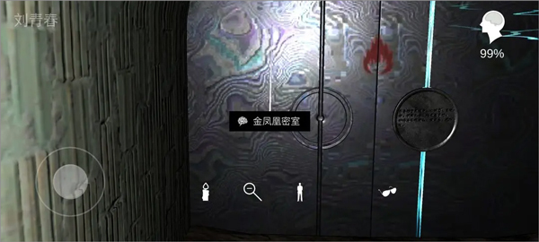 6、最后的青铜门内,戴着眼镜会看到佛经,不戴眼镜则会进入有金凤凰的密室。