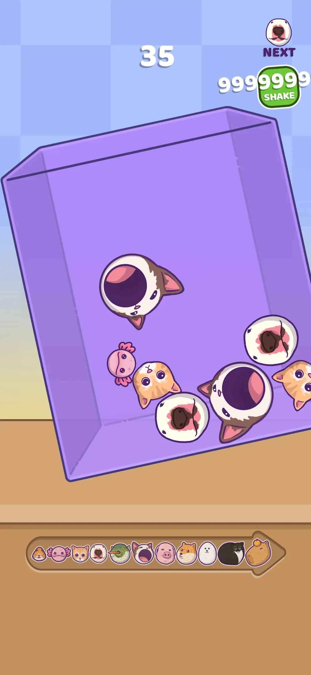2.各种不同类型的动物持续掉落,相同的动物会合并成体型更大的动物。