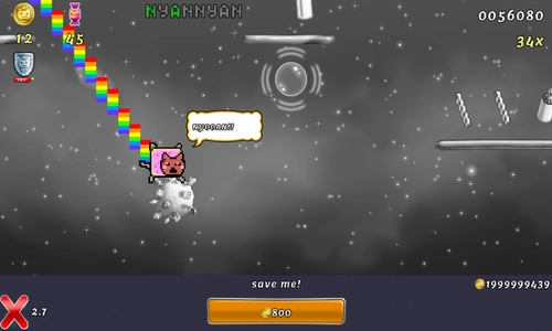 3.皮肤与背景:设有丰富多样的彩虹猫装扮及背景主题,玩家能够通过收集星星或者购买的方式解锁并更换,使游戏体验更具个性化。