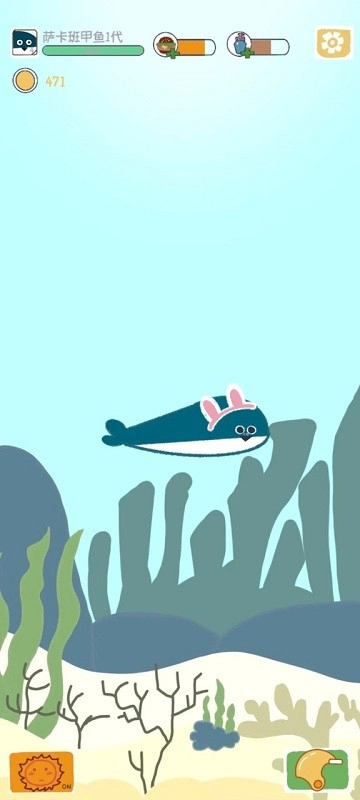 2、拥有丰富多样的装饰道具体系,玩家能够借助金币解锁风格各异的鱼缸布景以及护具装备,从而打造出独具个性的水下家园。