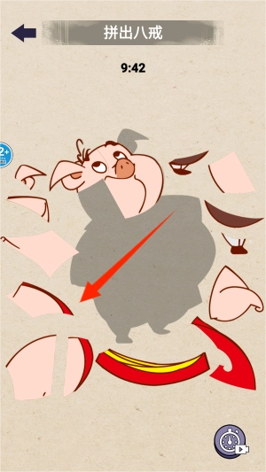 3、画面呈现出被拆分的猪八戒形象碎片,玩家可通过拖拽操作将这些碎片拼接起来,以还原出完整的图像。