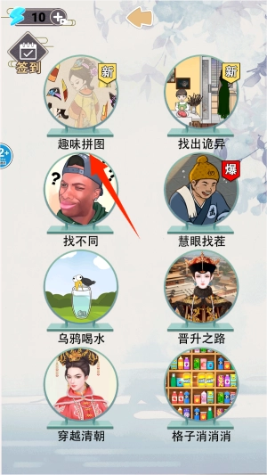 2、在模式选择页面找到趣味拼图选项,这个玩法的主题是经典名著里的角色。