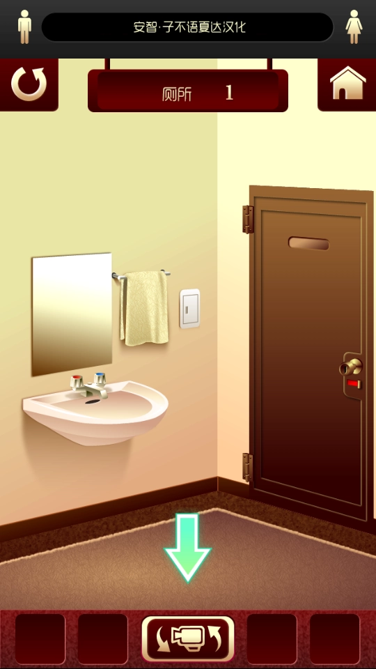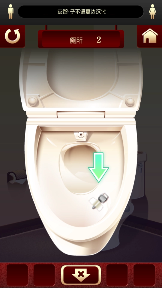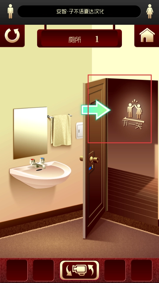 3、成功当前厕所的谜题后,找到标有下一关的门,点击进入下一个厕所场景,继续新的解谜挑战。