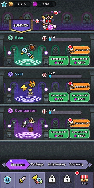 3、点击右下角可进入商店界面,其中第一个池子是装备池,第二个是技能池,第三个为宠物池,大家可根据自身需求进行抽取。