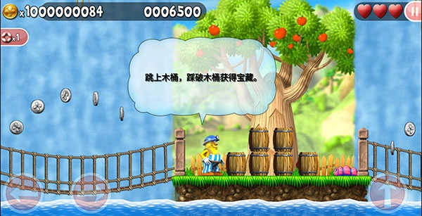 6、当然,在这一过程中还会有各类奖励机制:比如跳上木桶并将其踩破,就能获取里面的宝藏。
