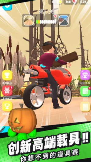 2、收集场景内的资源与道具,积累足够的财富以解锁更多款式的摩托车辆。