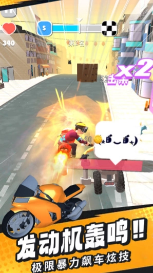 4、竖屏的风格与内容设计,只需轻松滑动屏幕就能体验刺激的飙车挑战,率先冲过终点线即可赢得竞速胜利。