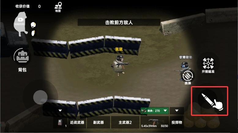 3、点击右侧的武器图标,瞄准并精准射击敌人,同时要注意利用周围的掩体,避免受到过多伤害。