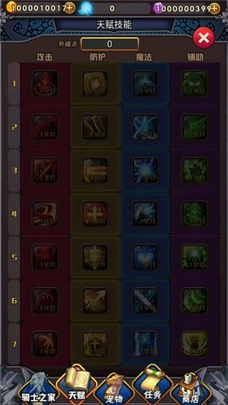 4、天赋技能等级说明,要及时升级天赋技能来提升战斗力,遇到卡关情况时,需留意天赋是否已及时升级