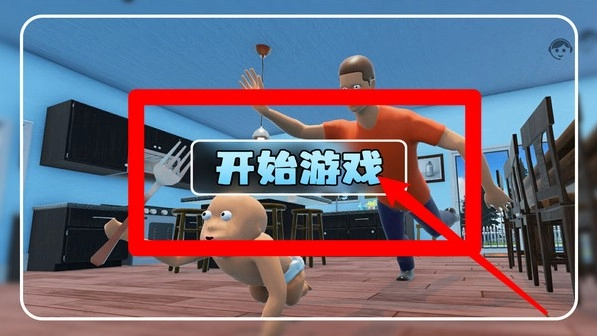 1.初始场景:玩家操控小宝宝与监护人进行捉迷藏的追逐游戏,点击“开始”按钮就能进入精彩的对抗环节。