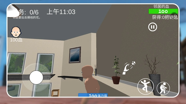 2.灵活躲避追捕:面对邻居的持续追击,玩家需通过快速移动与策略结合,借助环境优势和空间掩护来灵活应对危机,打造出紧张与刺激交织的畅快体验。