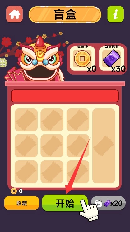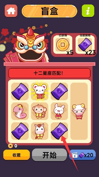 4、依次点击所有盲盒进行匹配消除,收集金币和盲盒奖励来完成挑战任务。