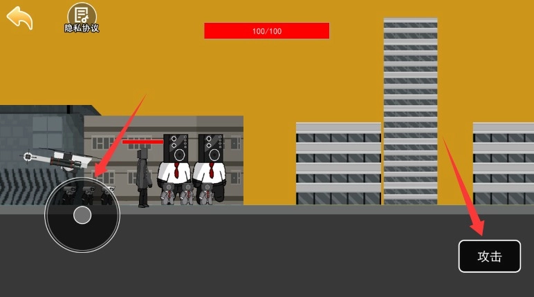 4、通过左侧的虚拟摇杆能够操控视角移动以观察战场,右侧的按钮则可以用来释放攻击技能对敌人发起攻击。
