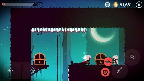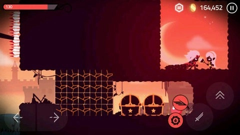 游戏采用虚拟按键操作机制,玩家可借助屏幕左下角的方向键操控骑士移动,利用屏幕右下角的跳跃键与攻击键分别实现跳跃和攻击动作。