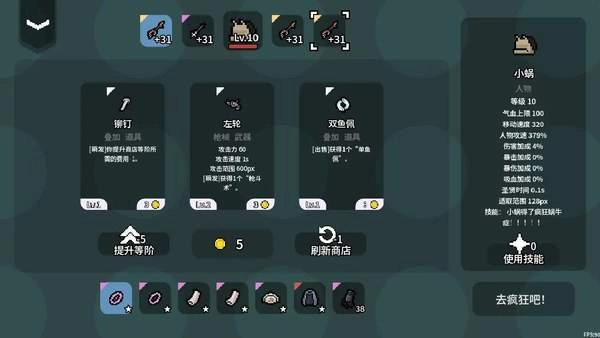 疯狂蜗牛症是一款极具吸引力的roguelike动作游戏,其画面简洁精致,玩家需通过合成各类道具增强自身实力,凭借智慧与策略赢得每场战斗,获取更多武器,从而在激烈的战斗中存活下来。现在就来体验这场充满策略与挑战的冒险吧!