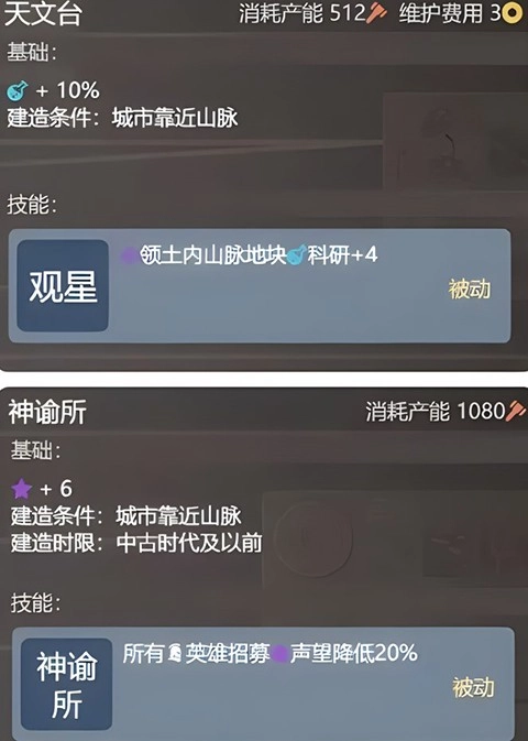5、部分建筑与奇观的建造条件要求邻近山脉,像天文台、神谕所便属此类。