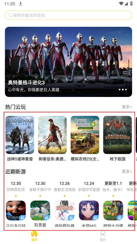 2、进入首页,滑动选择所需畅玩的。