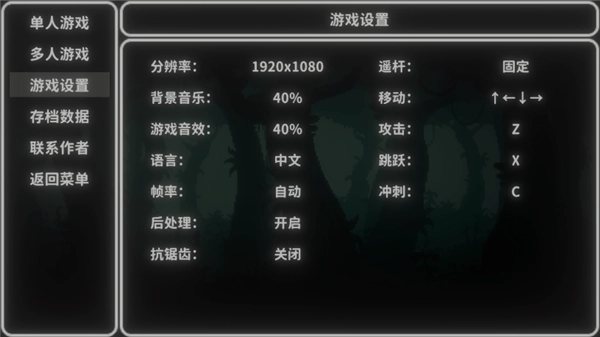 1.打开后,能看到比较新奇的画风,点击设置,里面可以调节分辨率、背景音乐、音效、语言等功能。