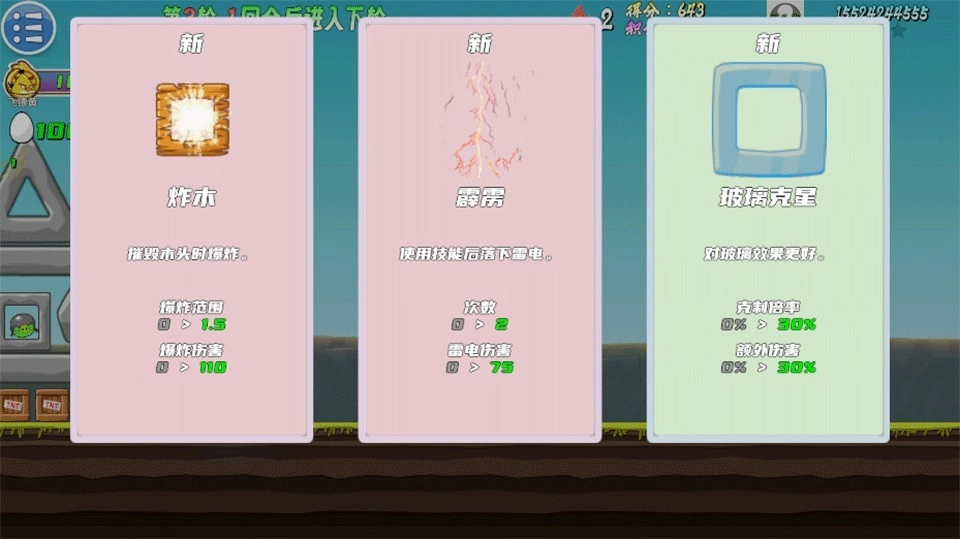 1、不同难度的关卡能获取不同数量的强化点数,每累积一百万积分就能转化为一点强化点数,每种小鸟最多能强化到99级,随着等级提升基础属性会逐步增强。