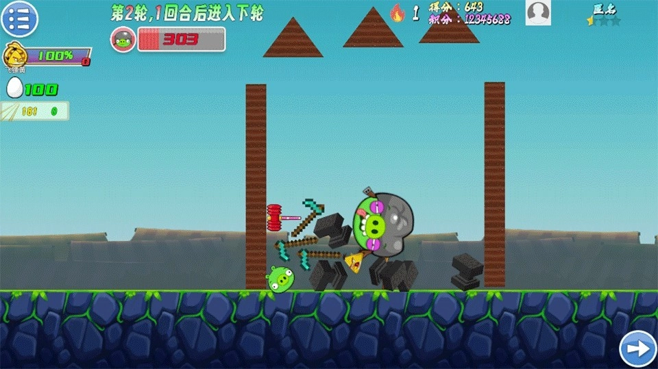 1、up主自制的愤怒的小鸟同人小游戏,玩法简单却融入了全新的技能元素,带着满满的肉鸽风格。