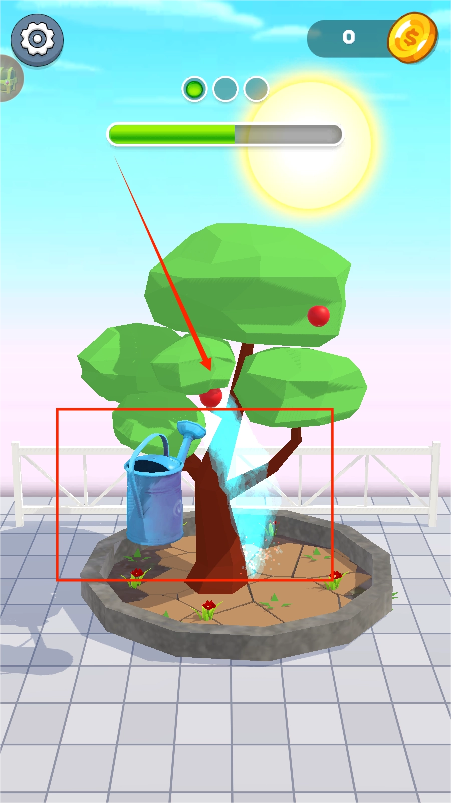 2、根据提示给你的苹果树浇水,让它快快长大。