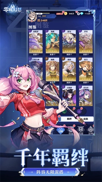 零域幻想打造了独有的共鸣法阵系统,你只需用心培养五位核心角色,剩下的英雄都能借助共鸣功能共享等级,彻底告别那些复杂的养成流程啦~这里有一百多种英雄可供招募,组合搭配十分自由,一键就能构建专属于你的最强战队!