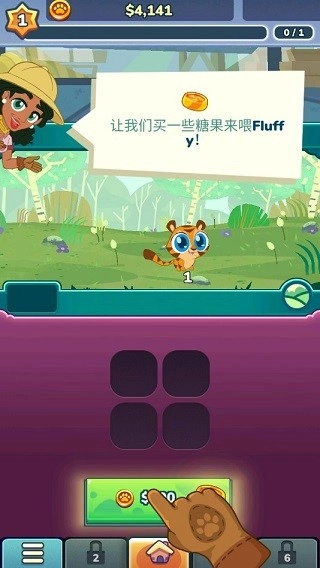 3、当然,你也可以通过喂养来培育这些动物,比如购买一些糖果投喂动物园里的动物,用金币购买食物后,将糖果喂给老虎,它们就能为你的动物园赚取更多金币。