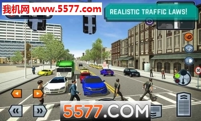 作为一款模拟驾驶类游戏,玩家可以在这里自由选择自己习惯的操控方式——比如转弯时可以用重力感应(摇晃设备)、虚拟方向盘或者左右转向按键;油门和刹车的设置也相当逼真。行驶过程中,你需要依照GPS导航显示的蓝色路线或箭头指引前进,同时还得遵守交通规则,像遇到“STOP”标志必须停车再行驶、转弯时要开启转向灯等。
